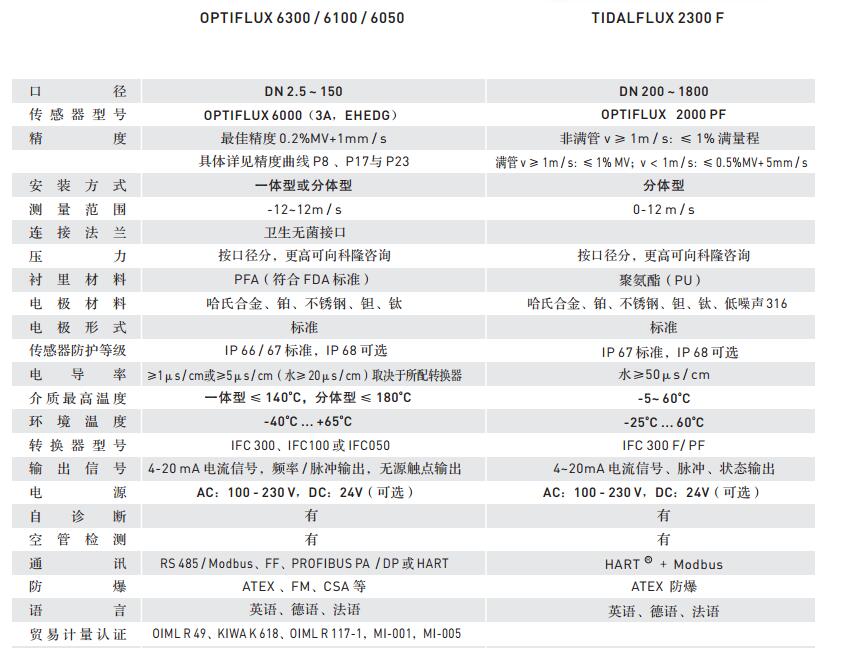 傳感器型號OPTIFLUX6000,轉(zhuǎn)換器型號IFC050,
